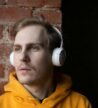 Close-up view of a motorcycle headlight with an angular design. The headlamp features a chrome reflective surface inside, and the surrounding structure is primarily orange with black accents. A portion of a license plate is visible above the headlight.
